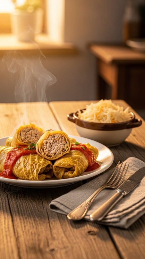 Savory Pork and Sauerkraut Cabbage Rolls