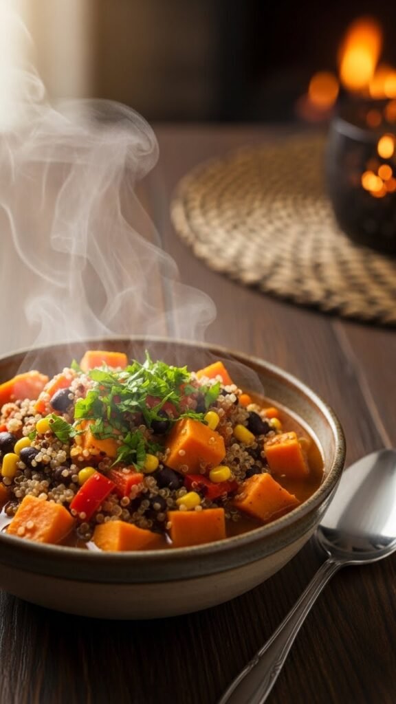 - Reduce heat and simmer for 25-30 minutes until quinoa and potatoes are cooked.