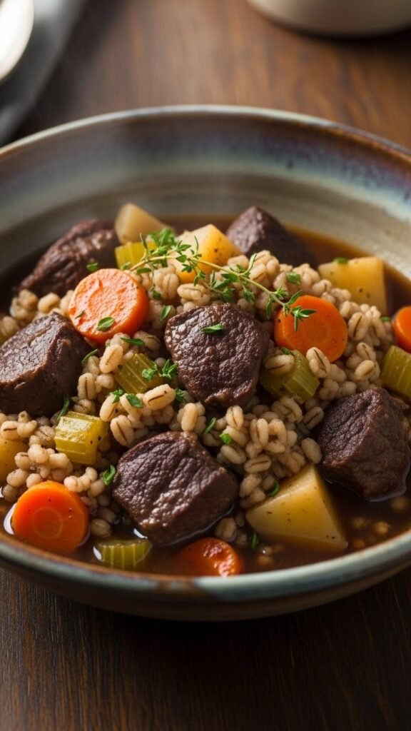 - Stir in barley, broth, and carrots; simmer for 1.5 hours.